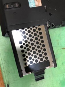 HDDをつけているゴムと金属のカバーを両方外して、先のSSDをアダプタごと取り付け、T420黒の中に差し込みます。