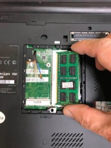 で、順番はちょっと前後しますが、先にメモリを差します。T420のメモリ増設は簡単で、裏の蓋を開けると、そこにはもう差し込みがあります。
