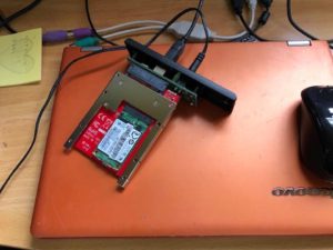さて、実際に11s(オレンジ)を分解して、SSDを交換するのですが、その前に、今稼働しているSSDの内容を、新しいSSDに移さなければなりません。自分は外付けHDD用のケーブルを流用しましたが、ない場合にはこんなものも必要です。